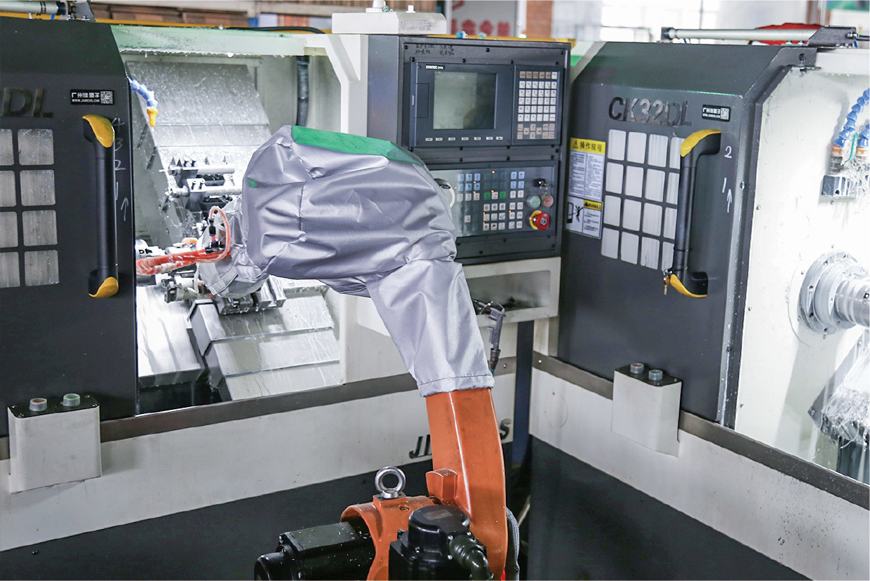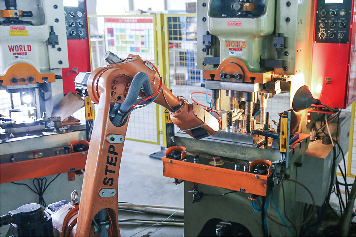 止动垫圈是应用于高级轿车上的一个汽车零部件,其生产加工全程自动化进行,工作岛由新时达1400机器人与压力机、车床等配合组成。